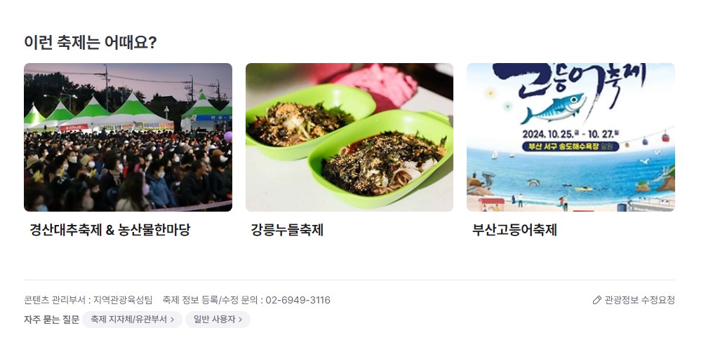 2024년 정읍 구절초 꽃축제: 기간, 일정, 주차장 및 가는 길 안내 (3) 2024.10.02 증평인삼골축제: 기간, 일정, 주차장 정보 및 가는 길 안내 (2) 2024.10.02 보은대추축제 2024: 일정, 주차장 및 가는 길 안내 (5) 2024.10.01 2024 전주비빔밥축제 일정 및 주요 정보 (12) 2024.10.01