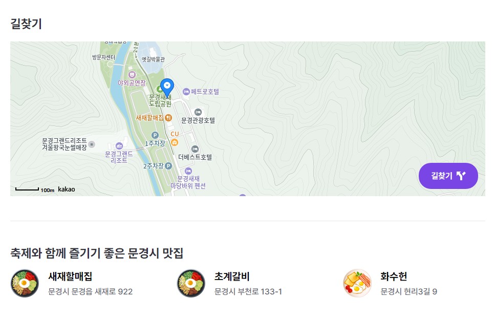 문경온천은 축제장에서 차로 약 20분 거리에 위치해 있으며, 축제의 피로를 풀기에 적합한 장소입니다. 다양한 활동을 즐긴 후 문경온천에서 여정을 마무리하는 것도 좋은 선택입니다.
