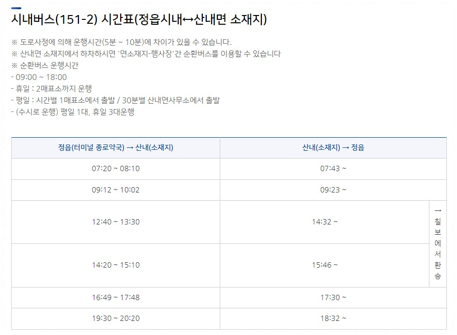 • 버스: 서울 고속버스터미널에서 정읍행 고속버스 탑승 후, 시내버스를 이용해 이동.