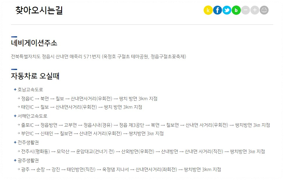 • 광주 출발: 호남고속도로 → 정읍 IC. 약 1시간 소요.