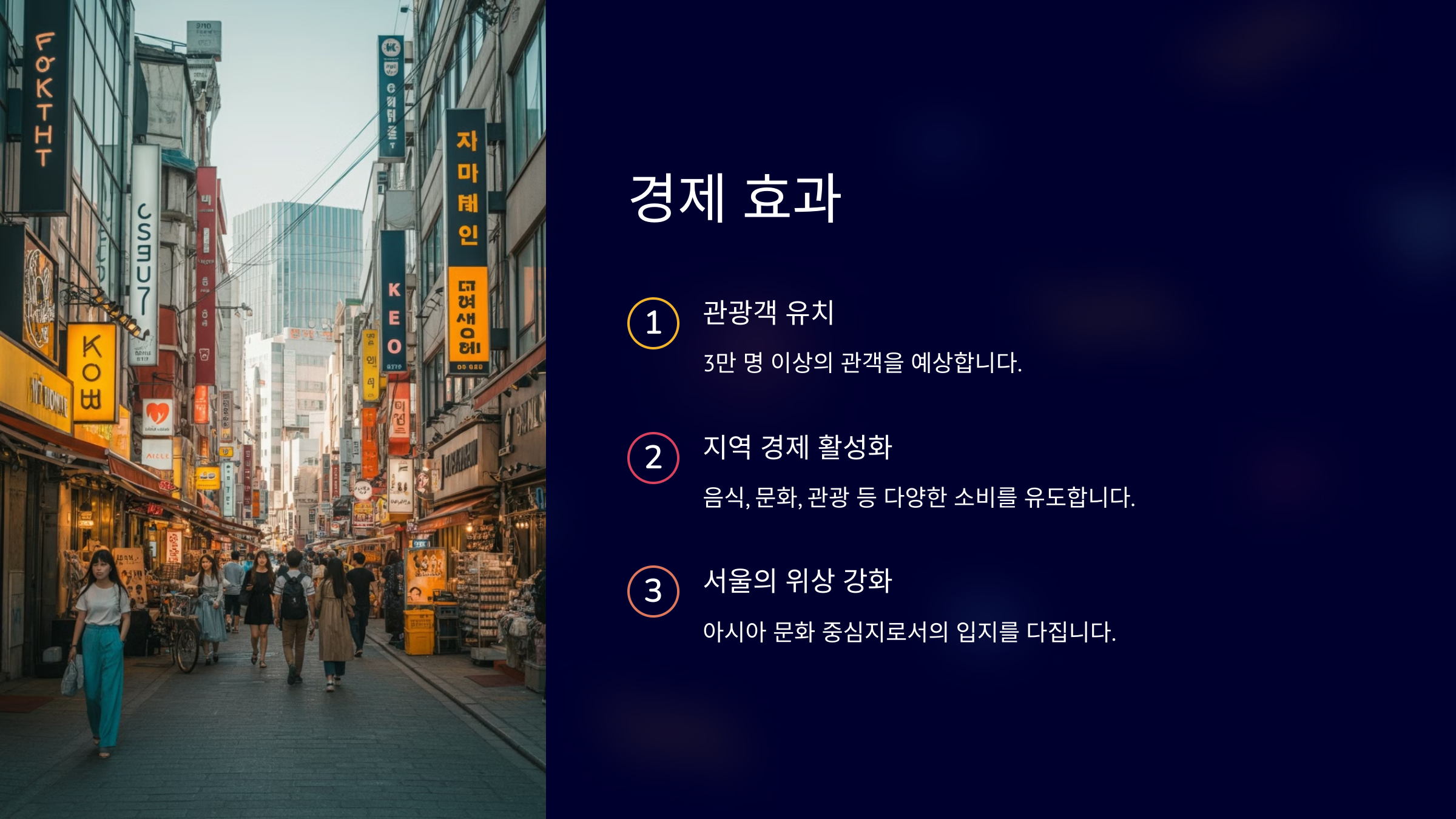 서울을 찾는 국내외 관광객들은 단순히 페스티벌 관람을 넘어, 한국의 음식, 문화, 관광지를 경험함으로써 직간접적으로 지역 경제에 기여하게 될 것입니다.