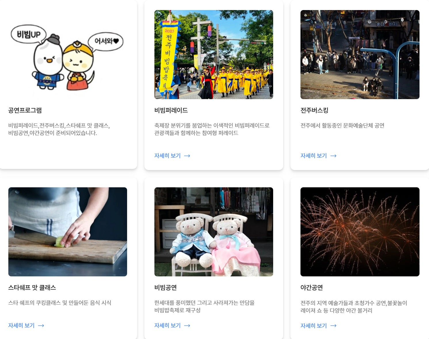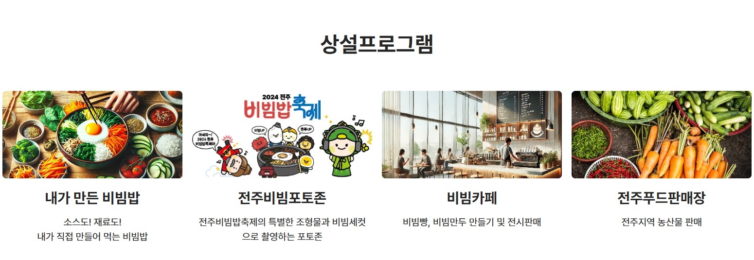 - 주요 행사: 비빔밥 만들기, 전통 음식 체험, 전주 한옥마을 투어, 전통 공연 등