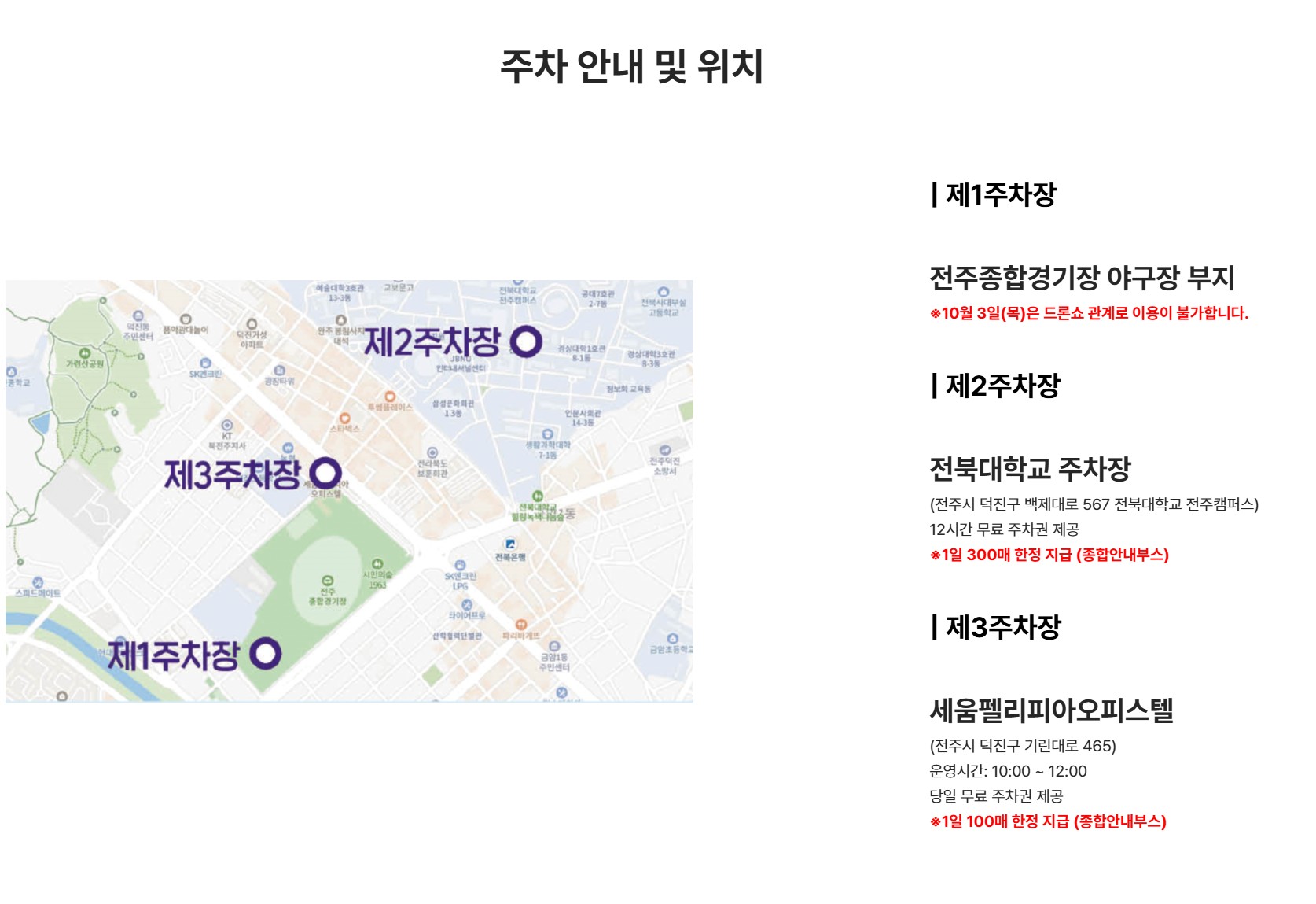 축제 기간 동안 많은 관광객이 전주를 찾기 때문에, 주차 문제는 미리 계획하는 것이 중요합니다. 전주 한옥마을 인근에는 여러 공영주차장이 마련되어 있으며, 임시로 운영되는 주차장도 있습니다. 주요 주차장 위치와 이용 요금에 대한 정보는 다음과 같습니다.